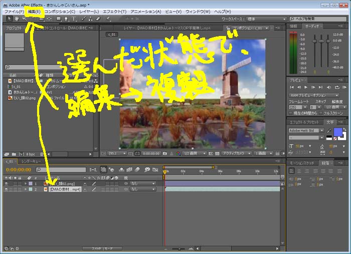 ↓「MAD素材字幕なし」動画レイヤーを、編集→複製でもう一つ作り、