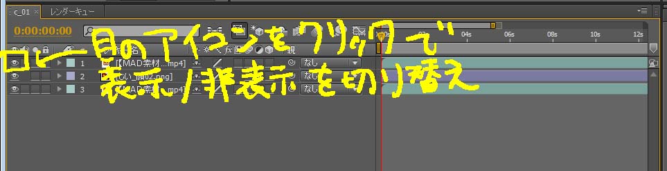 タイムラインパネルで一番上の動画レイヤーが選択されている状態なのを確認。