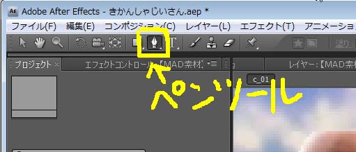 ↓ペンツールを使って、マスクを作成します。