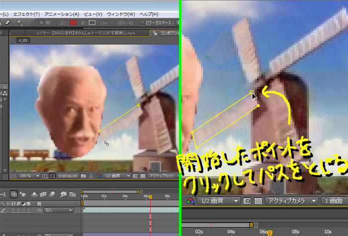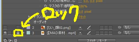 ↓マスクのパスを移動させるときに、下の動画レイヤーが選択されて動いてしまったりして