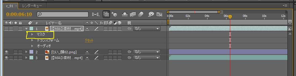 一番上の動画レイヤーにマスクを作成しますので、