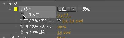 ↓マスクの下を開き、マスクパスの横の丸いマークをクリックして、アニメーションをオンにします。